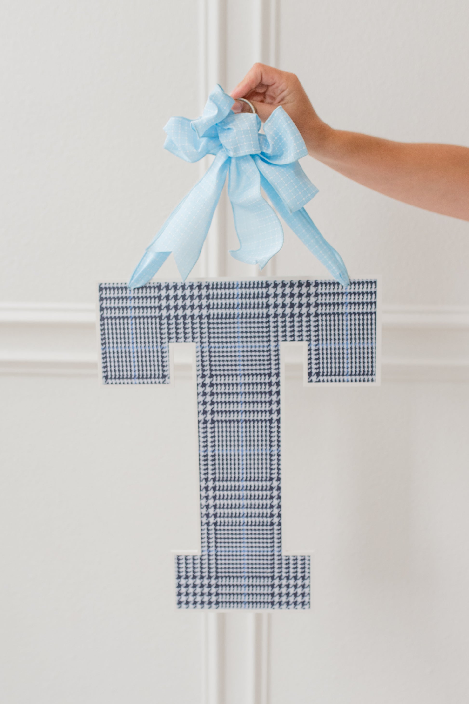 Block T Plaid Door Hanger